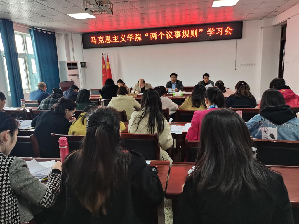 会议认真学习了《宿州学院马克思主义学院党政联席会议议事规则》、《宿州学院马克思主义学院党总支委员会会议议事规则》、《宿州学院关于进一步加强劳动纪律管理的规定》等文件。