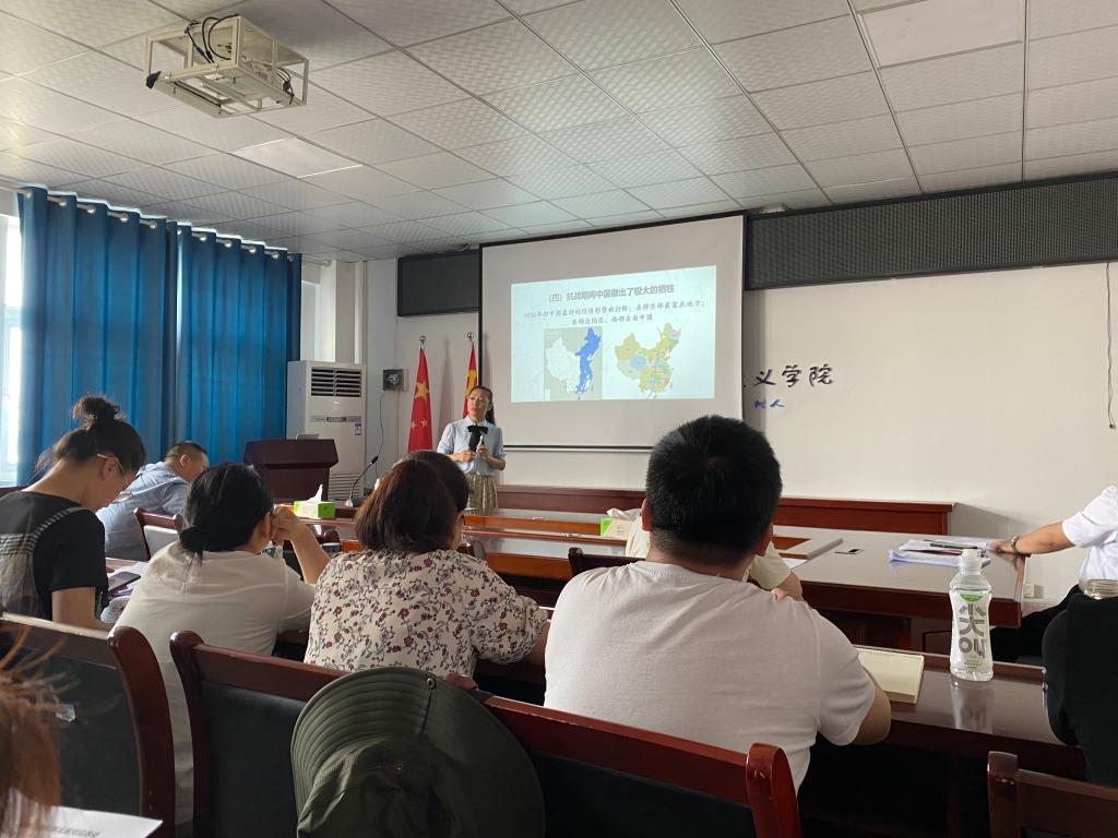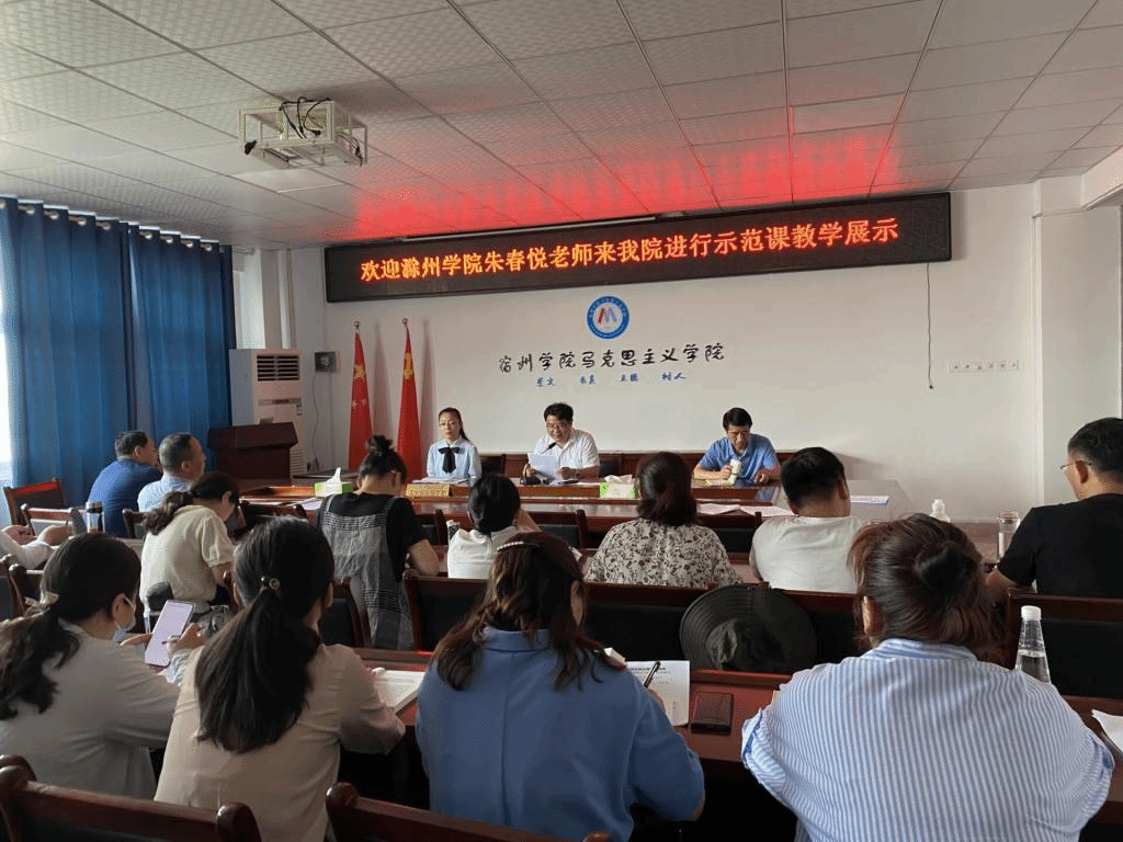 为进一步推动新时代思想政治理论课改革创新,为了给青年教师提供教学能力提升的学习平台,根据本学期教学工作安排,6月2日学院邀请滁州学院朱春悦老师为我院教师进行了精彩的课堂示范教学,马克思主义学院书记赵国付主持,学院教师全员参与,共同切磋教学技能,提升教学质量。