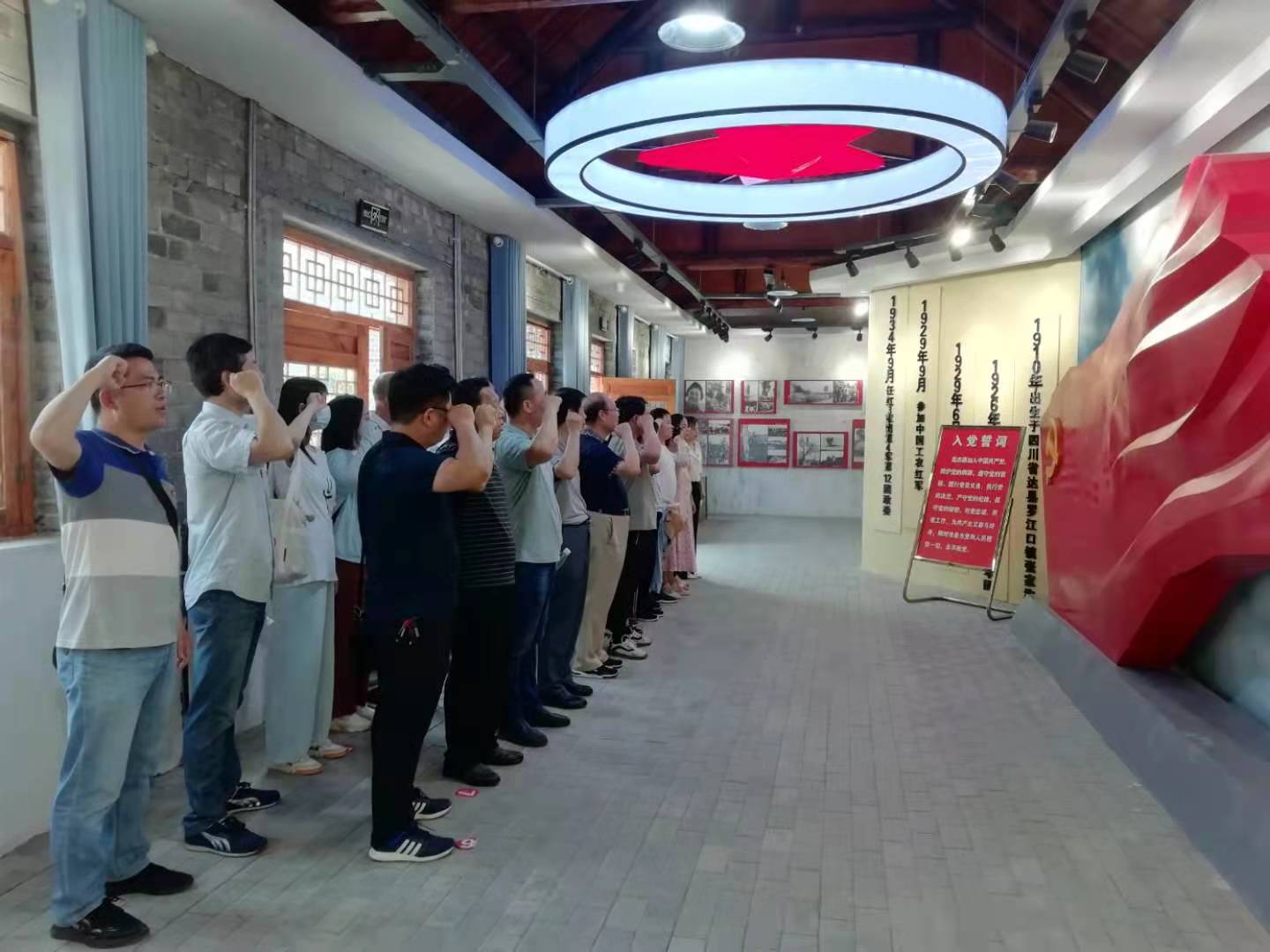 在第三展厅宣誓厅的党旗面前,全体党员面对党旗列队肃立,庄严地举起右拳,慷慨激昂、铿锵有力地重温入党誓词,回顾入党初心,表达永远跟党走的信念和为党的事业奋斗终身的决心。