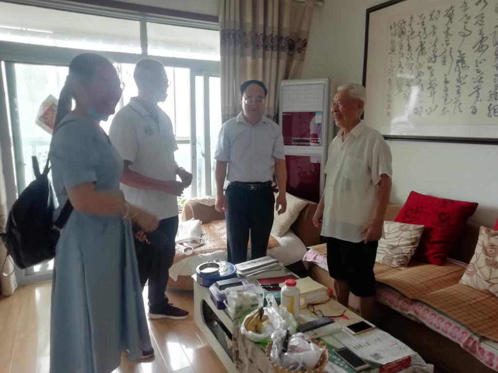 卢国备老人虽然年事已高但仍然心系学校发展,和慰问人员进行了亲切交谈。