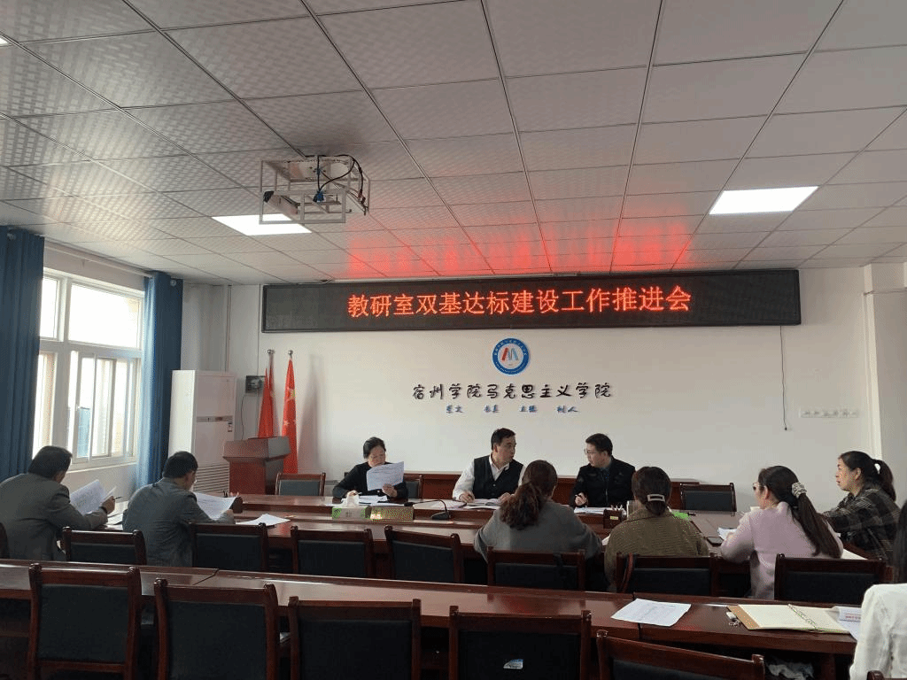 会上各教研室主任对照《安徽省普通高校基本教学活动达标和示范标准(试行)》、《安徽省普通高校基层教学组织(教研室)达标和示范标准(试行)》文件,依次汇报本当下教研室“双基达标”建设工作情况。