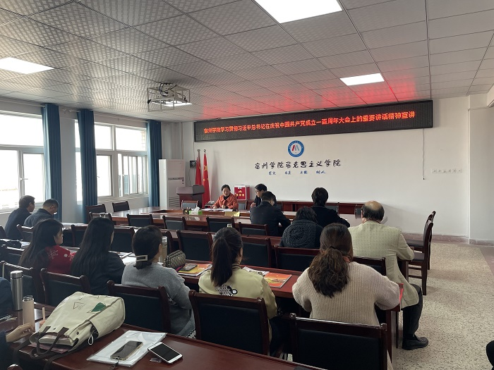 与会人员表示,通过此次宣讲会,进一步加深了对习近平总书记“七一”重要讲话精神的认识,要结合教学科研实际,做好习近平总书记“七一”重要讲话精神“三进”和研究工作;要继续弘扬伟大建党精神,赓续红色血脉,以实际工作成效为宿州学院实现“两个建成”贡献力量。
