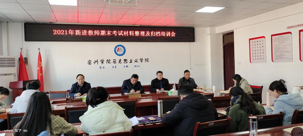 12月28日下午,马克思主义学院在教学A楼A510召开了新进教师期末教学材料归档培训会。会议由院长刘超主持,副院长唐伟元、教学办公室主任余晓宏、概论教研室主任项洋、军职教研室主任周思山及2021年新进教师参加了会议。