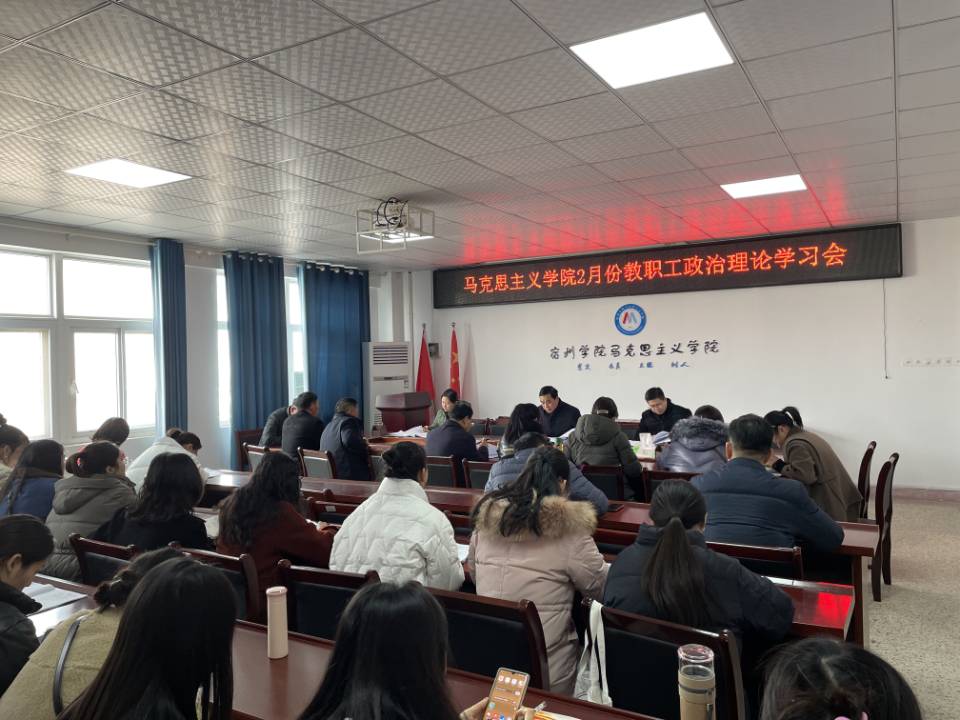 2月23日,马克思主义学院在教学楼A510召开二月份政治理论学习会。全体教职工参加会议,会议由院党委书记、院长刘超主持。
