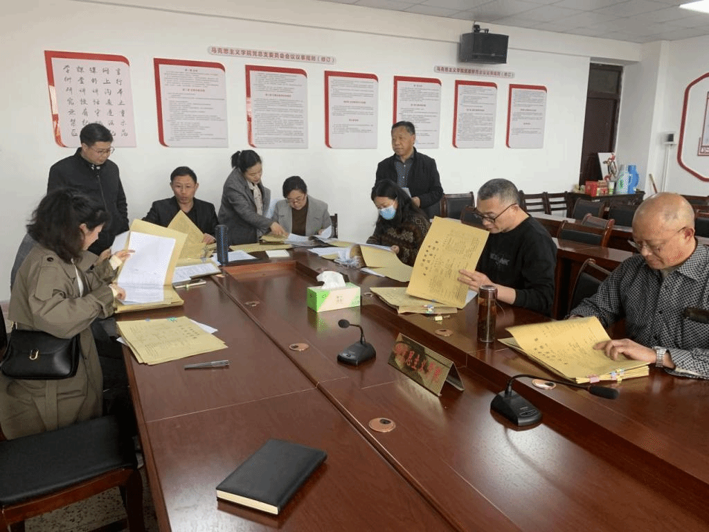 为提高期末考试材料归档管理工作标准化、规范化水平,3月16日下午2:30在副院长唐伟元组织下马克思主义学院开展各教研室上学期期末归档材料互查活动。