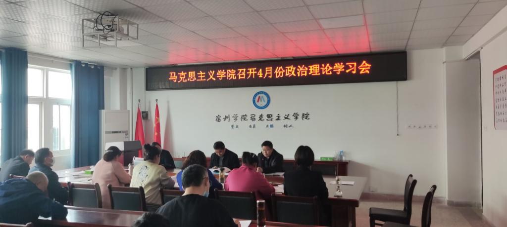4月13日下午,马克思主义学院在教学A楼五楼会议室召开4月份政治理论学习会,全体教师参加会议,院党委书记、院长刘超主持会议。