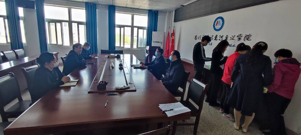为做好疫情防控下安全工作和思想政治教育工作,2022年4月19日上午,校党委副书记蔡之让等到马克思主义学院指导工作。