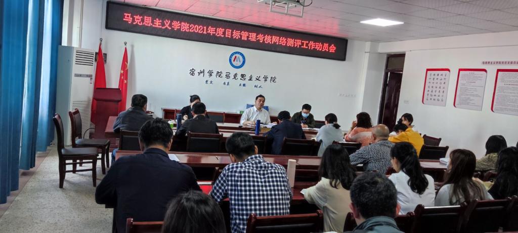 为做好2021年度单位(部门)目标管理考核和中层领导人员年度考核工作,提高单位(部门)及干部年度考核的科学化、精确化水平,5月3日下午,马克思主义学院在教学A楼五楼会议室召开全体会议,院党委书记、院长刘超主持会议。