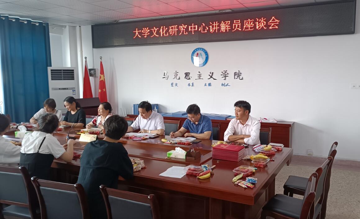 为推动大学文化研究中心纪念馆工作迈上新的台阶,更好完成举旗帜、育新人、兴文化、展形象的宣传教育使命,马克思主义学院于6月1日下午在学院会议室召开了大学文化研究中心纪念馆讲解员座谈会。座谈会由马克思主义学院党委书记、院长刘超主持。
