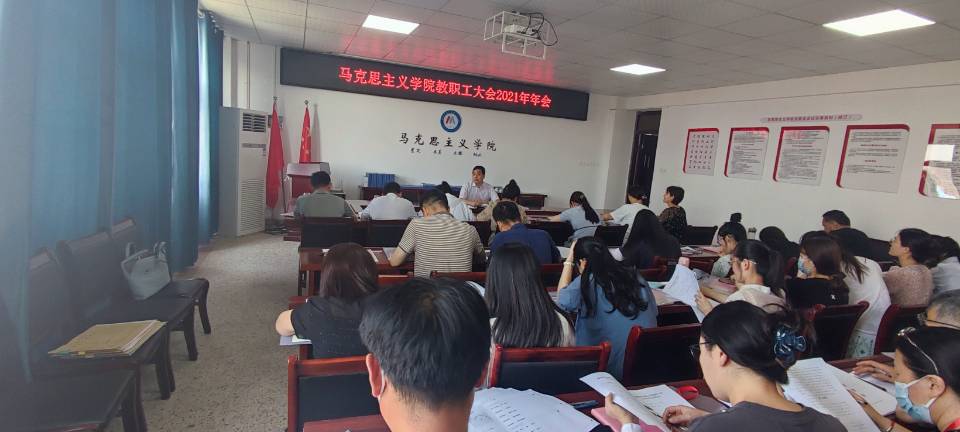 2022年6月17日下午,马克思主义学院在学院会议室召开教职工大会2021年年会,与会人员听取和审议了学院党委书记、院长刘超代表学院所作的工作报告。