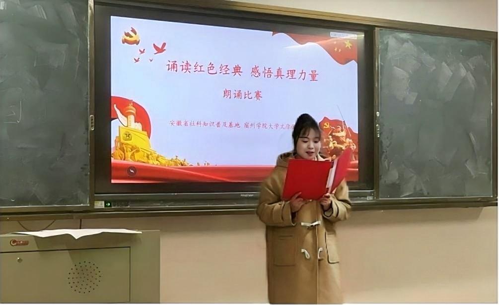 为深化党史学习教育,引导学生传承红色精神,从党的光辉历程中感悟初心使命,寻求真理力量。安徽省社科知识普及基地——宿州学院大学文化研究中心于12月22日在教学楼A103教室举办了“诵读红色经典,感悟真理力量”朗读比赛决赛。