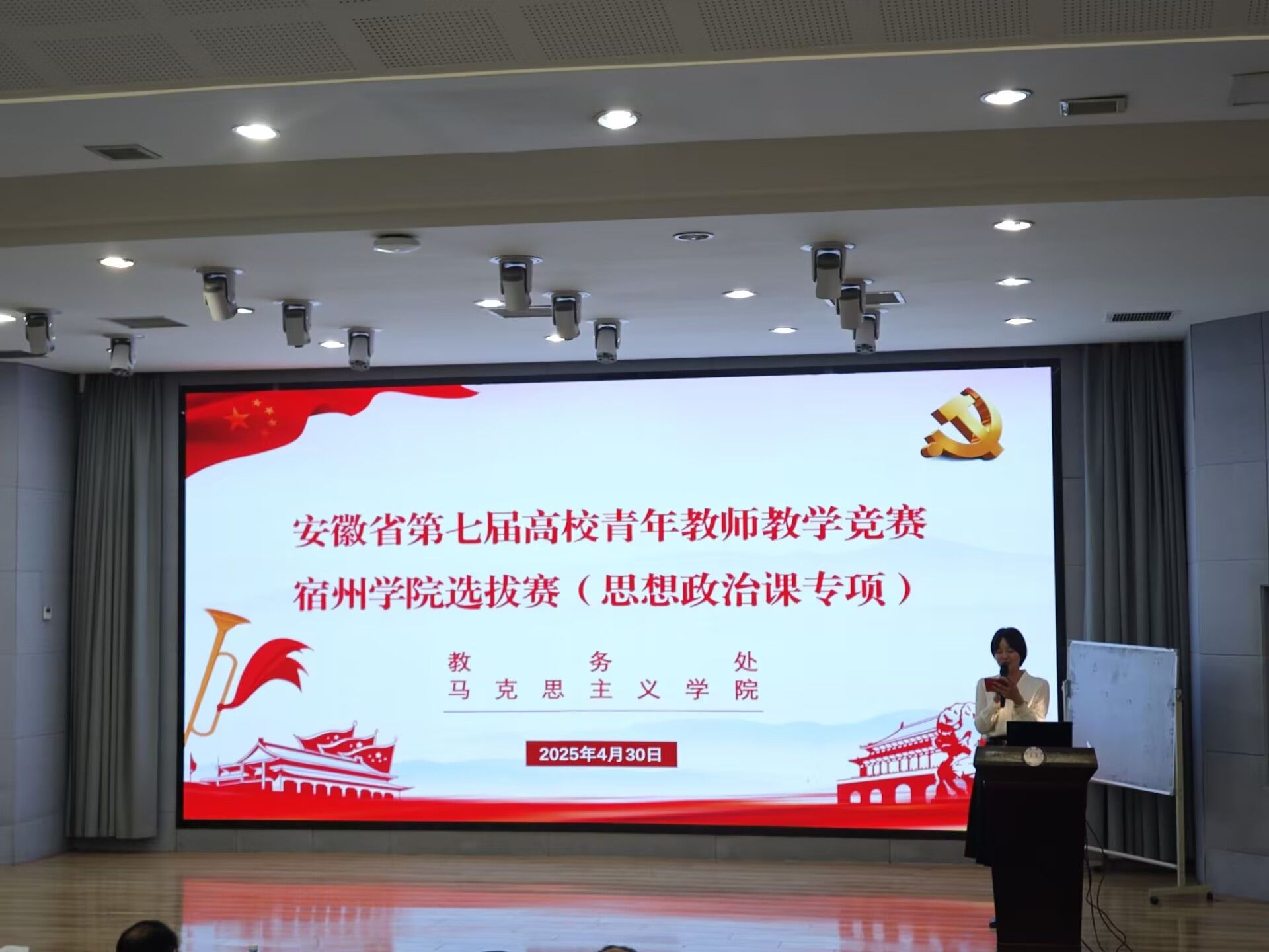 为进一步提升思政课青年教师教学能力,近日我校在工科楼招聘大厅举办了安徽省第七届高校青年教师教学竞赛宿州学院选拔赛思想政治课专项组竞赛。学院全体教师参与观摩。