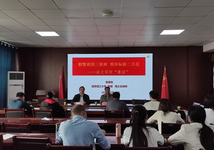 梁德友以《删繁就简三秋树 领异标新二月花》为题,从论文写作的规律、学术论文的类型、学术论文的准备与撰写以及学位论文的种类等方面进行了系统阐述。他结合学术活动经历和生活实际,以小见大,由浅入深,强调学术研究中要突出问题导向与守正创新。