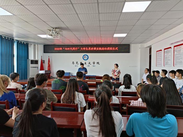 2022年6月1日下午,马克思主义学院概论课教研室在教A513教室开展2021——2022(2)实践教学课程优秀作品颁奖活动。出席本次活动的人员有马克思主义学院院长刘超,马克思主义学院副书记蒋林梅,概论课教研室主任项洋,青年教师代表璩甜甜,获奖学生代表等,会议由马克思主义学院副院长唐伟元主持。