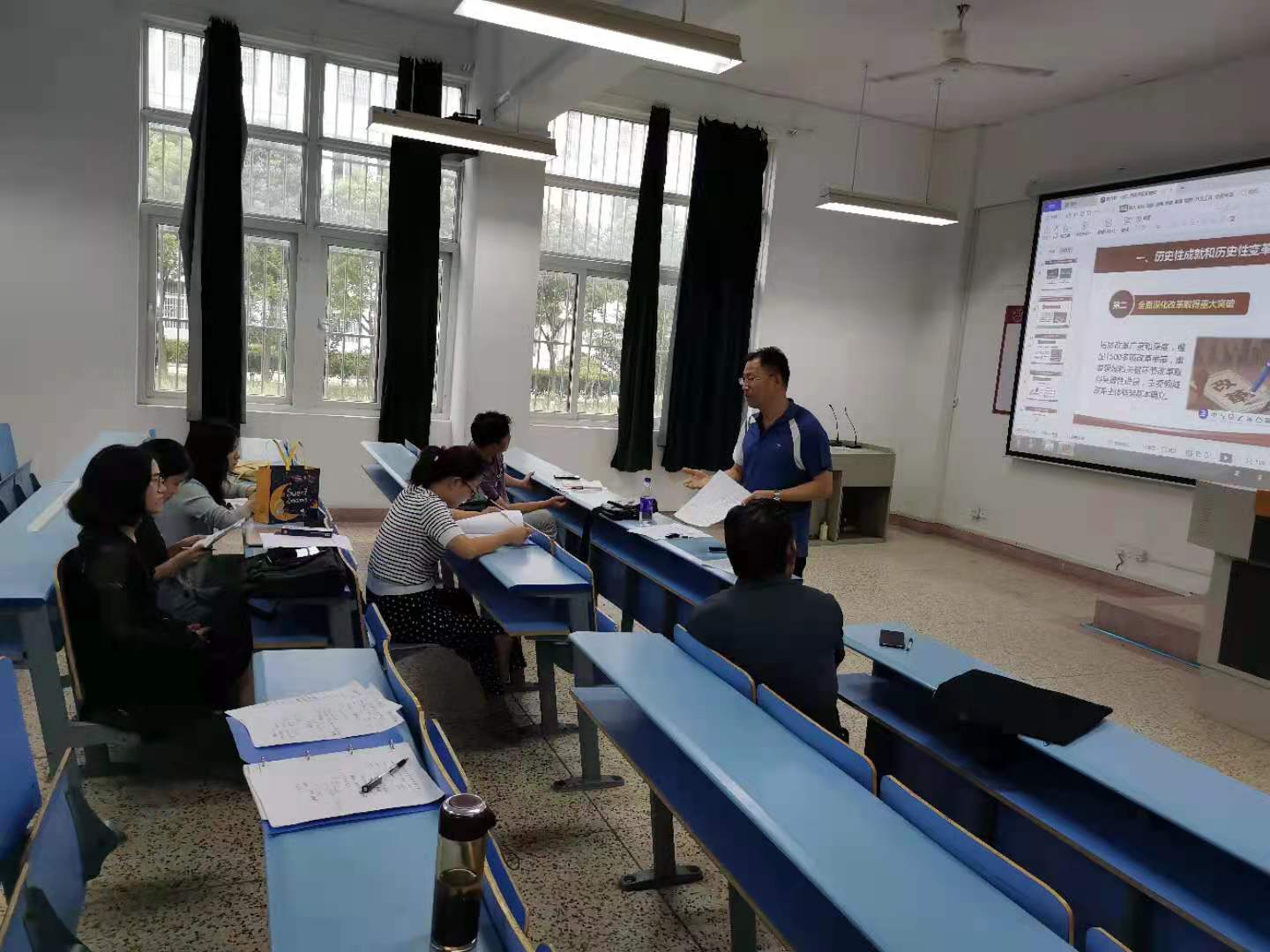 8月29日下午,概论课教研室在教学楼B106教室开展新进教师课前试讲活动。马克思主义学院副院长唐伟元出席,概论课教研室主任项洋主持活动。