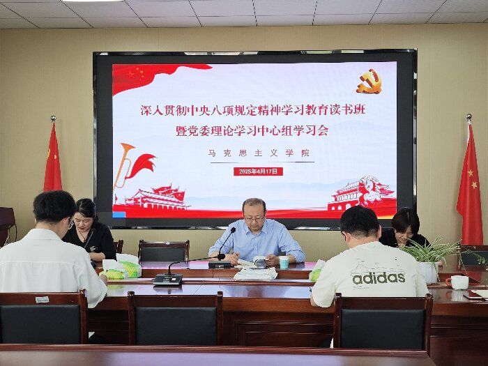 4月17日,马克思主义学院在图书馆805召开深入贯彻中央八项规定精神学习教育读书班暨党委理论学习中心组专题学习会。学院全体教职工参会,会议由学院党委书记、院长凌峰主持。
