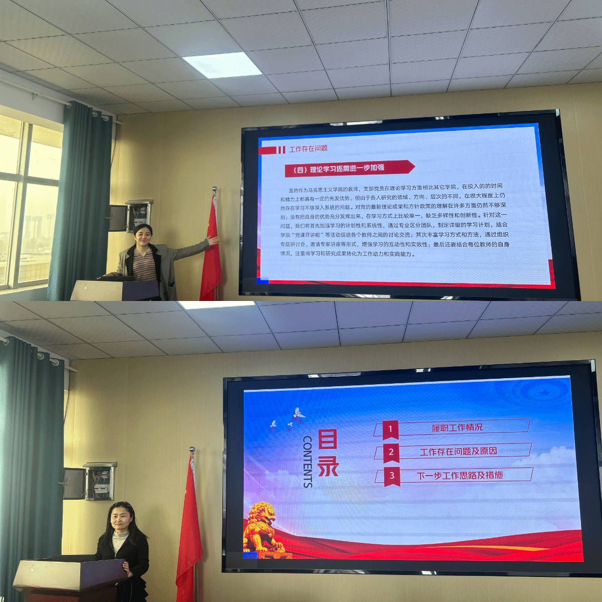 会上,四个教师支部书记分别围绕2024年工作开展情况展开述职汇报,全方面总结过去一年基层党支部工作成效,反思问题与不足,并提出下一步工作思路和举措。