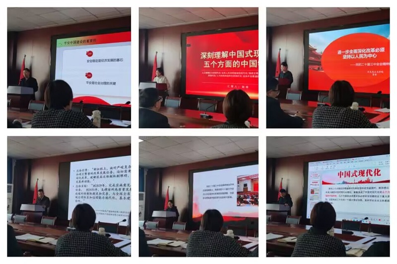 在“党课开讲啦”环节,六位教师结合深入学习贯彻党的二十届三中全会精神,分别以《党的二十届三中全会精神融入高校思政课的路径思考》《党的二十届三中全会中进一步全面深化改革必须坚持以人民为中心》《全面深化改革为全面建设现代化新宿州而团结奋斗》《深刻理解中国式现代化五个方面的中国特色》《中国式现代化理论》《聚焦建设更高水平平安中国》为题进行了交流发言。