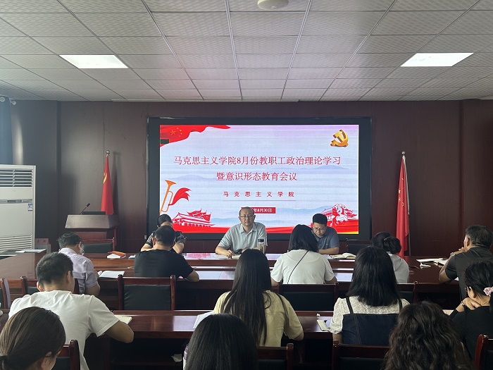8月30日下午,马克思主义学院在510会议室召开八月份教职工政治理论学习会。全体教职工参加会议,会议由学院党委书记、院长凌峰主持。