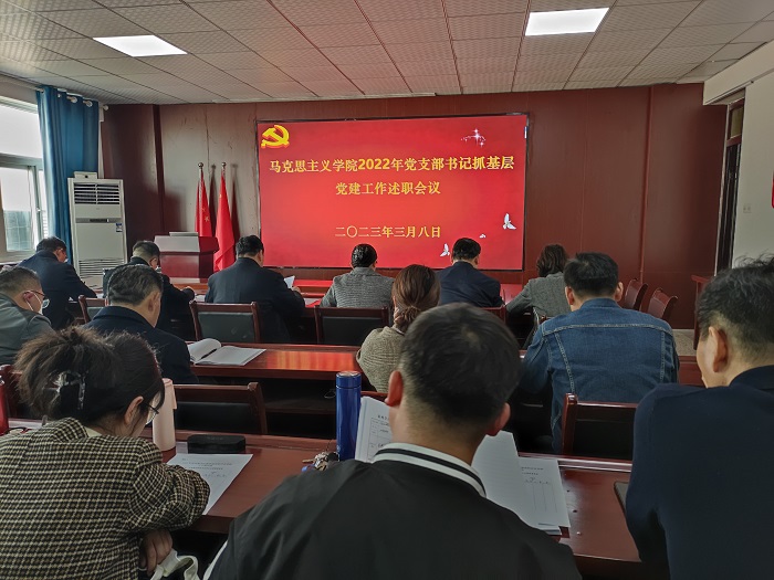 3月8日下午,马克思主义学院在教学楼A510会议室召开2022年基层党支部书记抓党建述职评议考核会。学院党委委员、党支部书记、支部委员及教师代表参加会议。会议由学院党委书记、院长刘超主持。