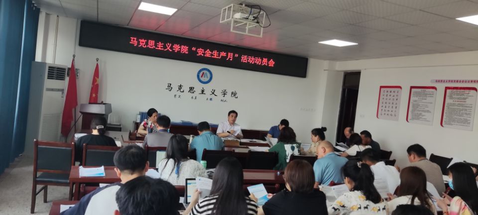 2022年6月是第21个全国“安全生产月”。为贯彻落实习近平总书记关于安全生产的重要论述,推进“安全生产月”活动。6月1日下午,马克思主义学院全体教师在学院五楼会议室参加会议。院党委书记、院长刘超主持会议。