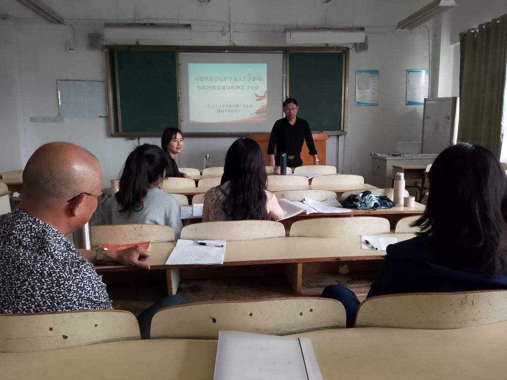 会上,宣传委员苏懂美带领大家学习习近平总书记考察中国人民大学重要讲话内容。习近平总书记强调:“思政课的本质是讲道理,要注重方式方法,把道理讲深、讲透、讲活,老师要用心教,学生要用心悟,达到沟通心灵、启智润心、激扬斗志。”习近平总书记指出:“培养社会主义建设者和接班人,迫切需要我们的教师既精通专业知识、做好“经师”,又涵养德行、成为“人师”,努力做精于“传道授业解惑”的“经师”和“人师”的统一者。”